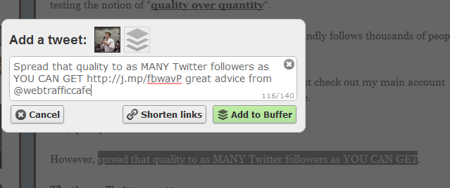 That’s an amazing feature, I didn’t know that I can highlight a certain line in an article and turn it into a tweet with Buffer. Awesome!