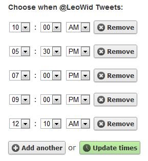 By default Buffer sends your tweets well spaced out during the day and you can always go back to your home account at www.bufferapp.com and change your timing, add more or adjust them to your needs. Here are my fixed daily tweeting times: