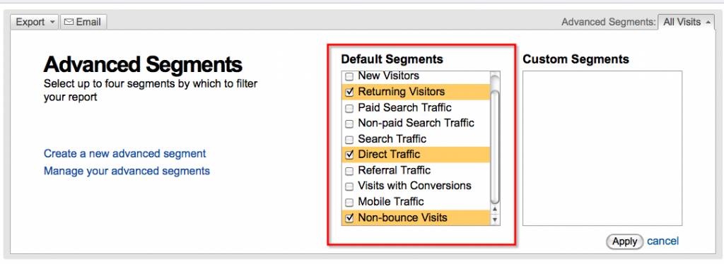 Great post on more resourceful ways to use google analytics. I have been working on dropping my bounce rate. It didn’t even think to use it to see who my returning visitors are.