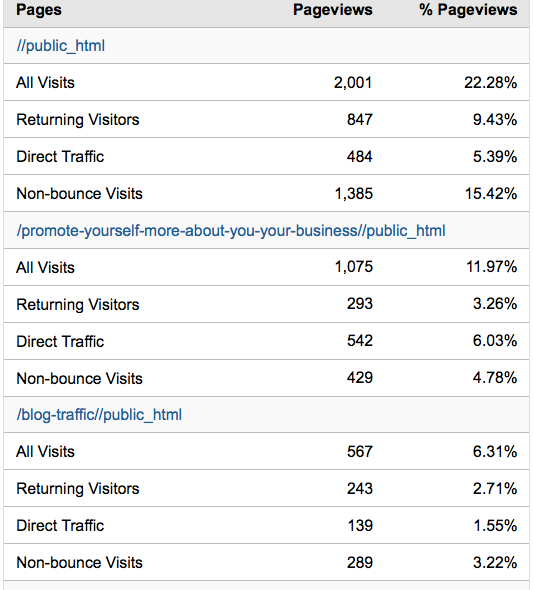 In my case, the first 3 are my Traffic Generation Cafe home page, Promote Yourself page, and Increase Blog Traffic page.