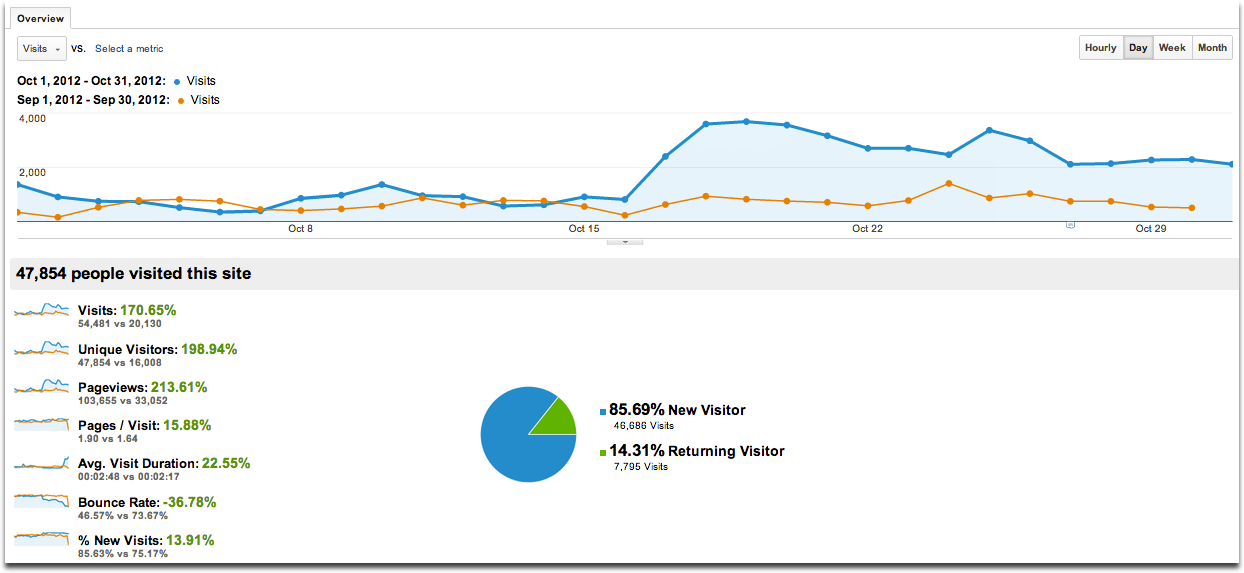 There was a lot of green in my Google Analytics in the month of October.