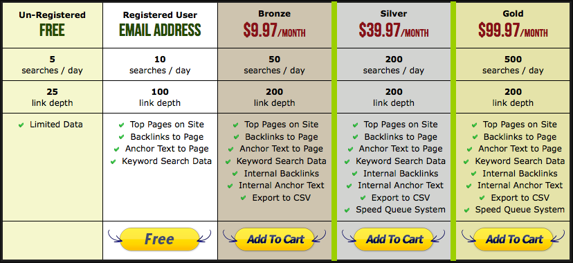 - Unlimited everything: number of backlinks to find, searches per day/month, etc.