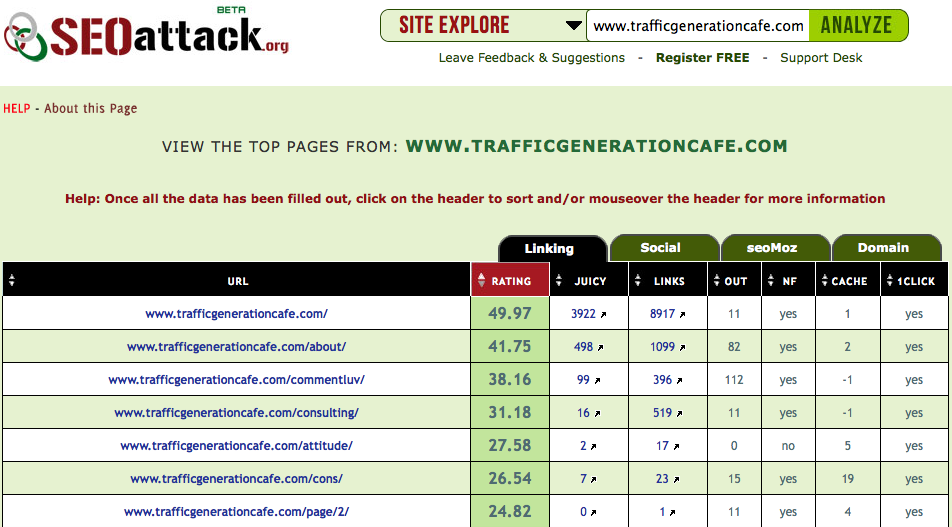 Even worse, the tool itself picks the “top pages” to analyze and from what I've seen, their “top pages” picks are a far cry from reality.