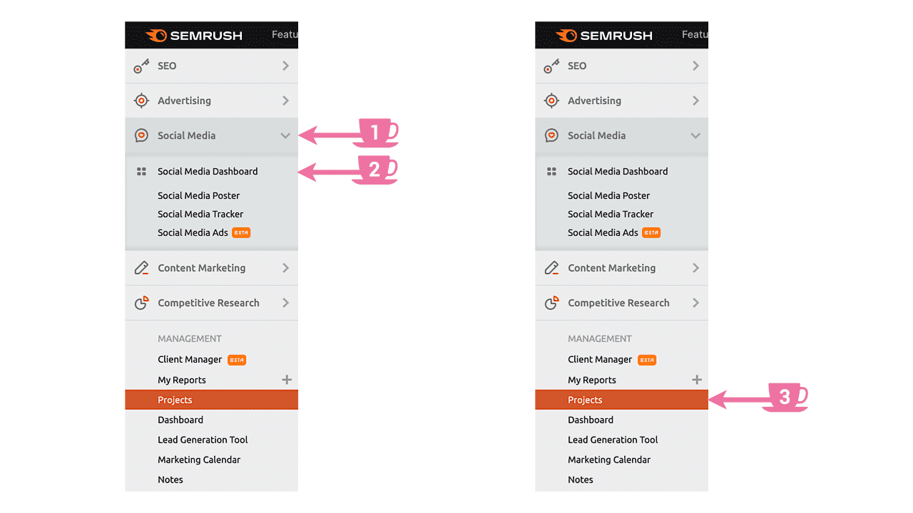 NOTE: If you have more than one Semrush project, youāll need to select which one you want to set up for social tracking.